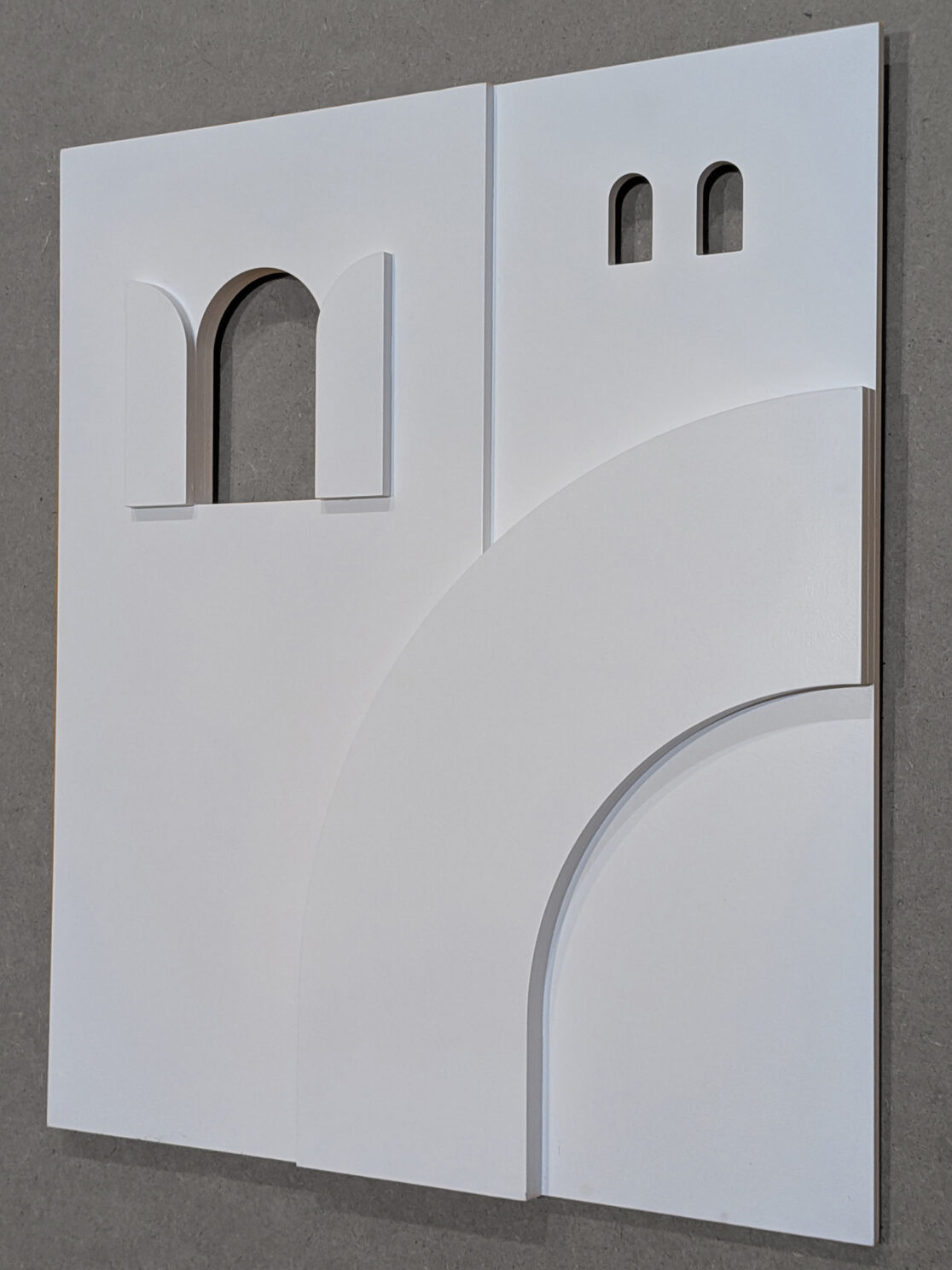 The first Pueblo series captures the atmosphere of southern Mediterranean villages — their light, proportions, and quiet emotional resonance — through the language of minimalist abstraction. The aim was to evoke this sense of place using the fewest possible geometric elements, allowing light and shadow to define the reliefs’ rhythm and aesthetic presence as they shift throughout the day. When illuminated with spotlights, the geometry comes alive — shadows deepen, edges sharpen, and the compositions reveal a new spatial dimension that transforms perception and mood.